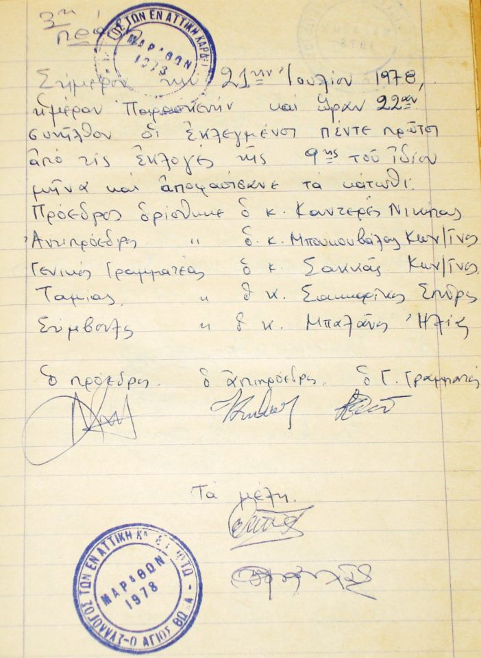 Το 1ο Πρακτικό συγκρότησις προσωρινού ΔΣ του Συλλόγου μας, ιστορικό έγγραφο: